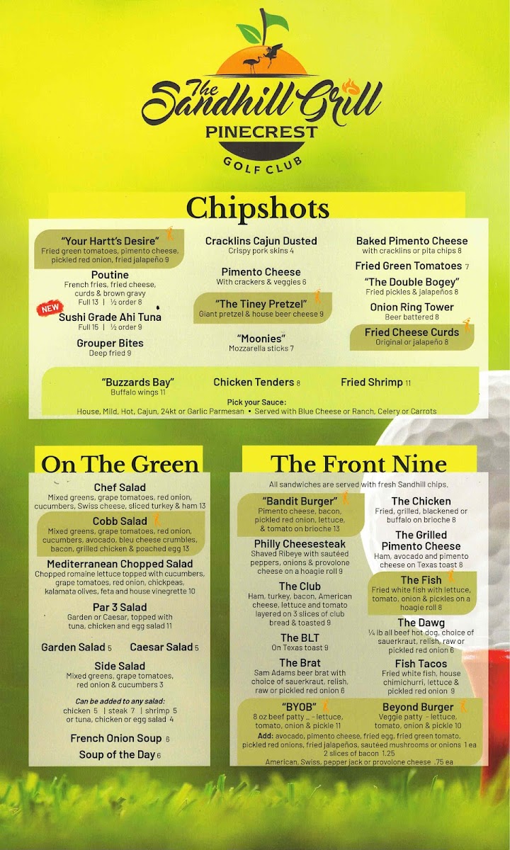 Whether you're finishing a round of golf or simply seeking comfort food, Sandhill Grill promises quality dining in a relaxed setting.